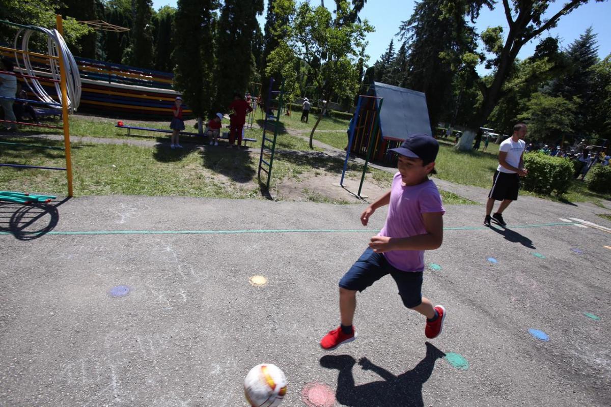Они встретились с воспитанниками образовательного учреждения, и провели среди детей расширенную программу развлечений: состязания, эстафеты и различные конкурсы, а завершилось все это футболом. В конкурсах участвовало около 120 детей.