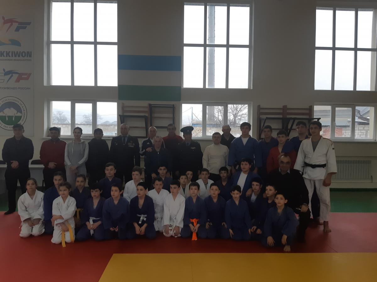 В с.Кенже в спорткомплексе «Кенже» Управлением по физической культуре, спорту и делам молодежи Местной администрации городского округа в рамках муниципальной программы « Профилактика терроризма и экстремизма в г.о.Нальчик» была организована встреча воспитанников и тренеров подведомственной спортивной школы МКУ «Спортивная школа по дзюдо» и ветеранами боевых действий Гелястановым Б. А., Абаноковым В. К.