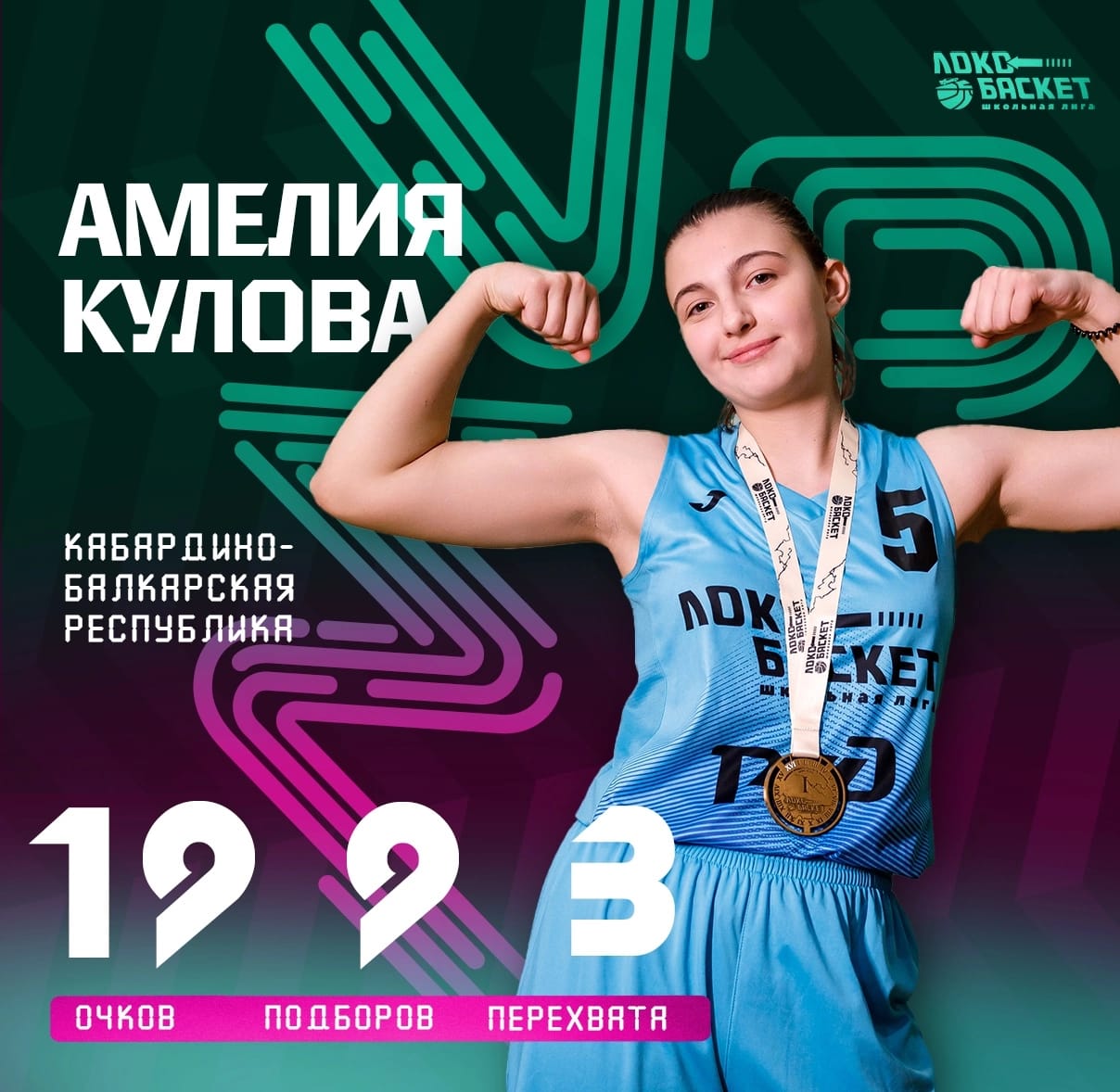 -Шонтукова Ларина получила номинацию «Лучший центровой» соревнований, среди девушек.