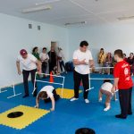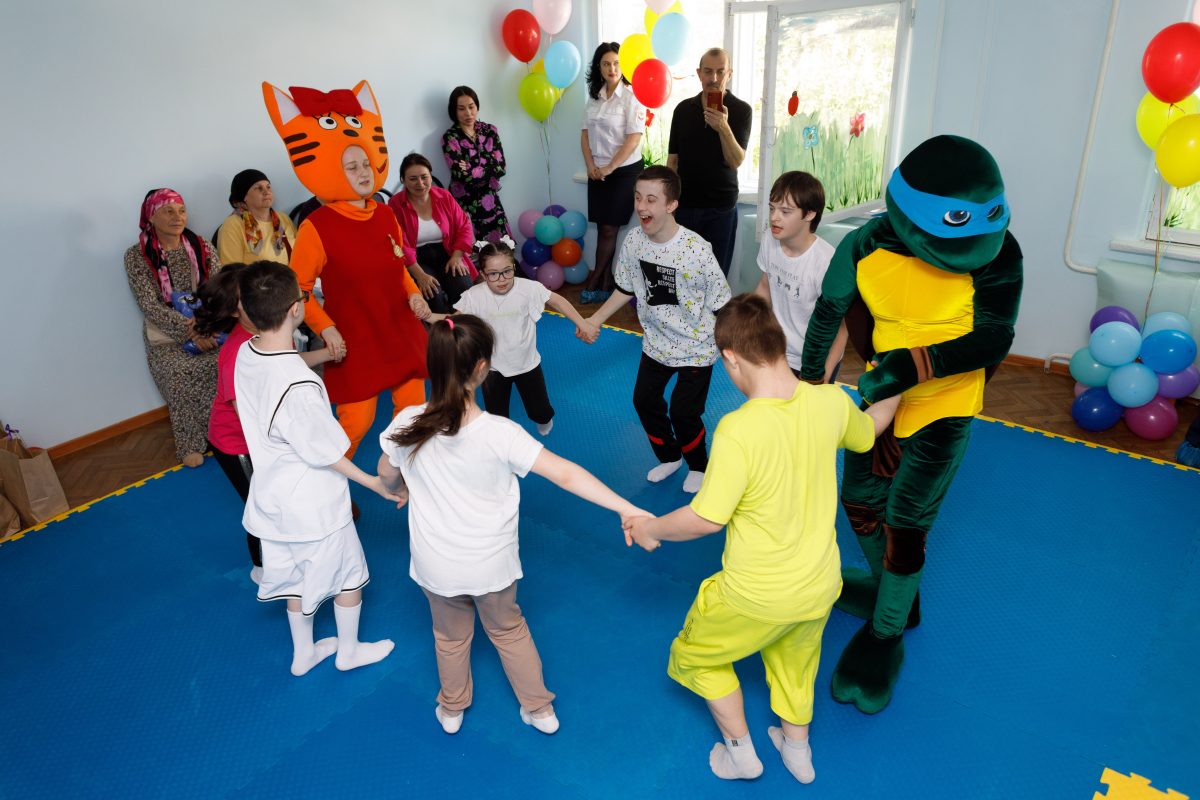 Под руководством тренеров по адаптивной физкультуре Азамата Бербекова и Алима Тежаева ребята поучаствовали в разминке и эстафетах. В конце мероприятия детей повесили аниматоры агенства Сова.