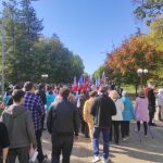 Участники прошли по маршруту от входа в Атажукинский сад со стороны ул. Лермонтова по центральной аллее до сцены городка аттракционов.