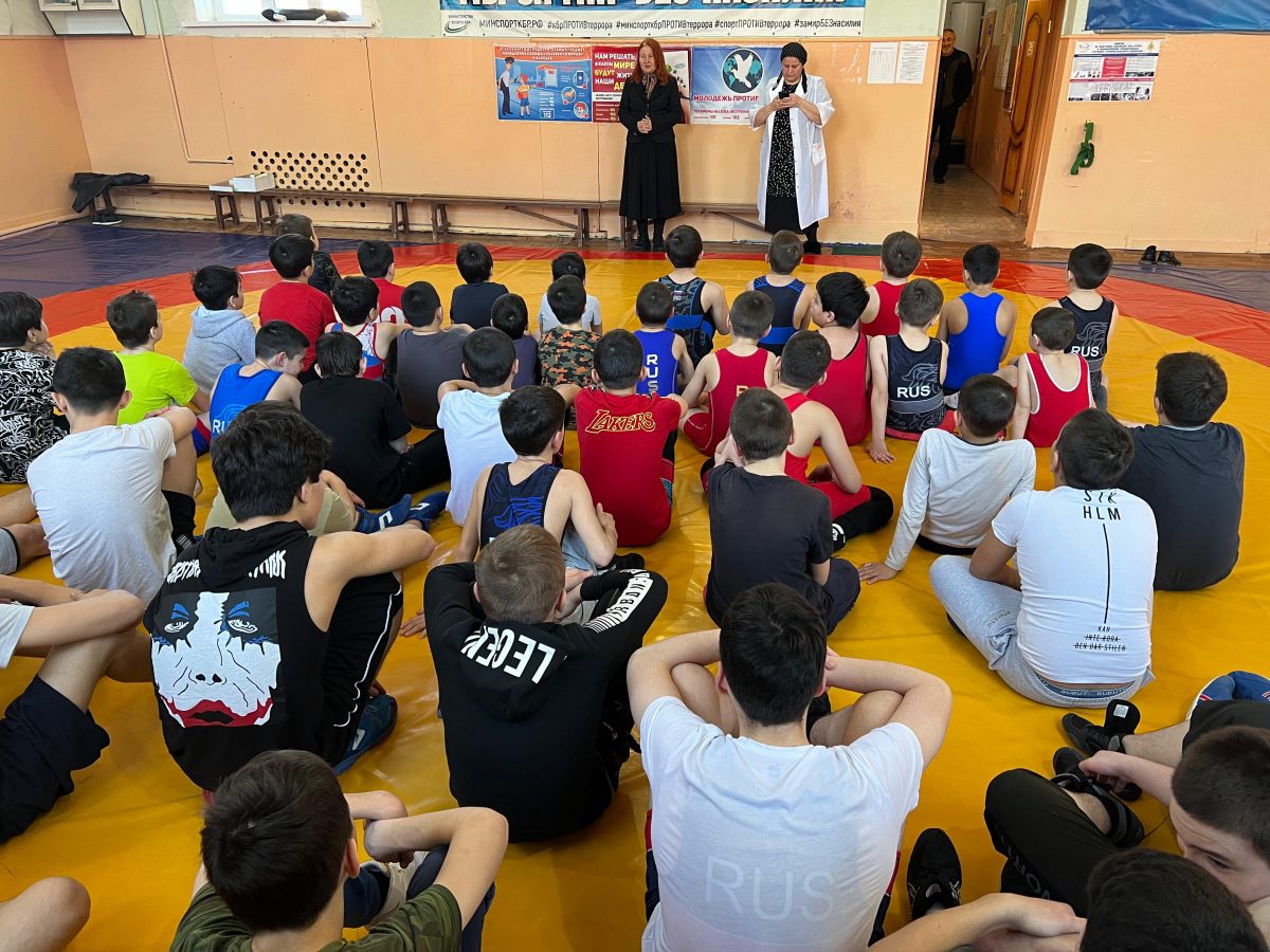 25 января 2024 года в спортивном зале борьбы им. Р.Фриева в селении Хасанья перед тренировочным занятием состоялась профилактическая беседа с участием воспитанников МКУ ДО «СШ № 3 по вольной борьбе и боксу» и врача — нарколога Нагорной Татьяны.